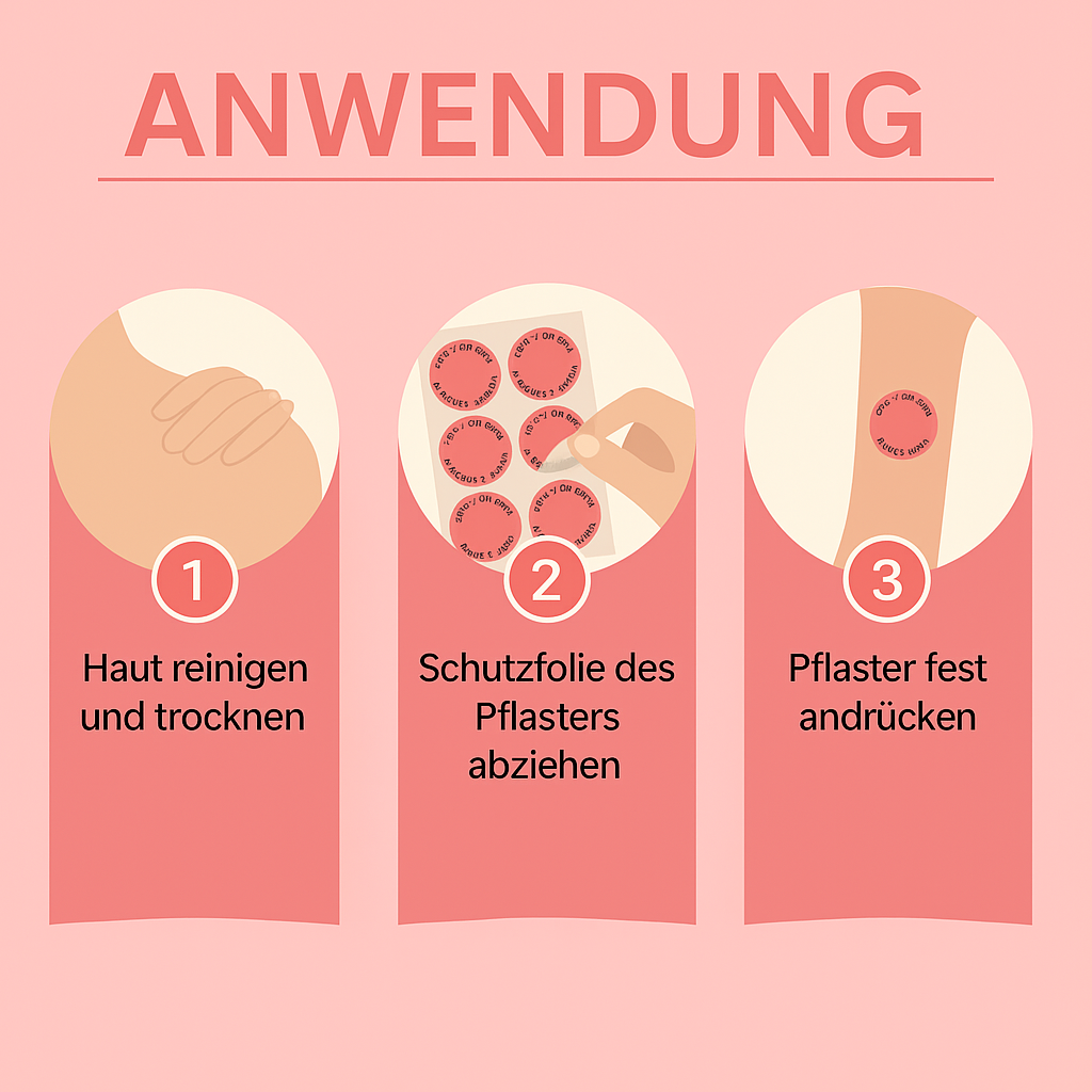 Kein Pulver, keine Tabletten – nur ein kleines Patch, das du täglich aufklebst. Diskret, unkompliziert und sanft zum Körper. So einfach wie auf unseren Anwendungsbildern gezeigt – und gleichzeitig hochwirksam.