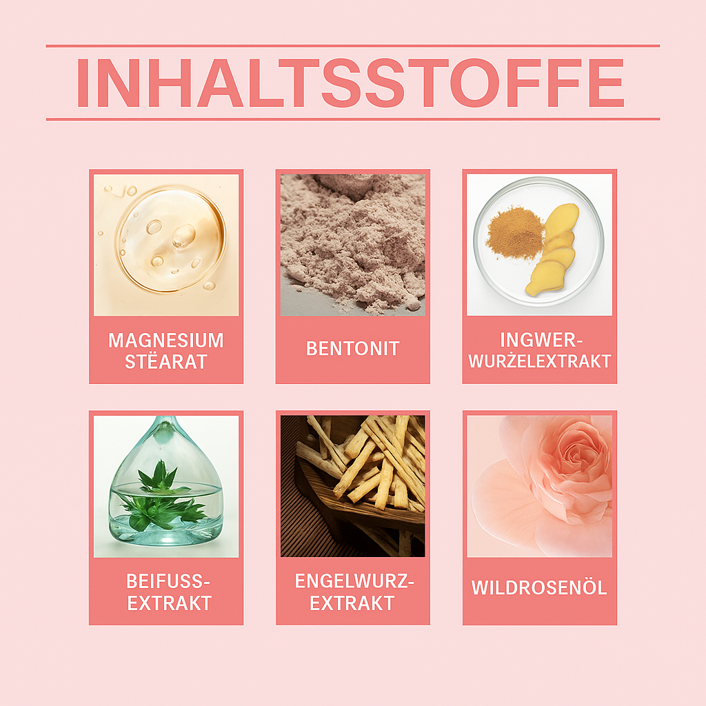 Unsere GLP-1 Patches enthalten eine ausgewählte Kombination aus Magnesiumstearat, Bentonit, Ingwerwurzelextrakt, Beifuß-Extrakt, Engelwurz-Extrakt und Wildrosenöl.