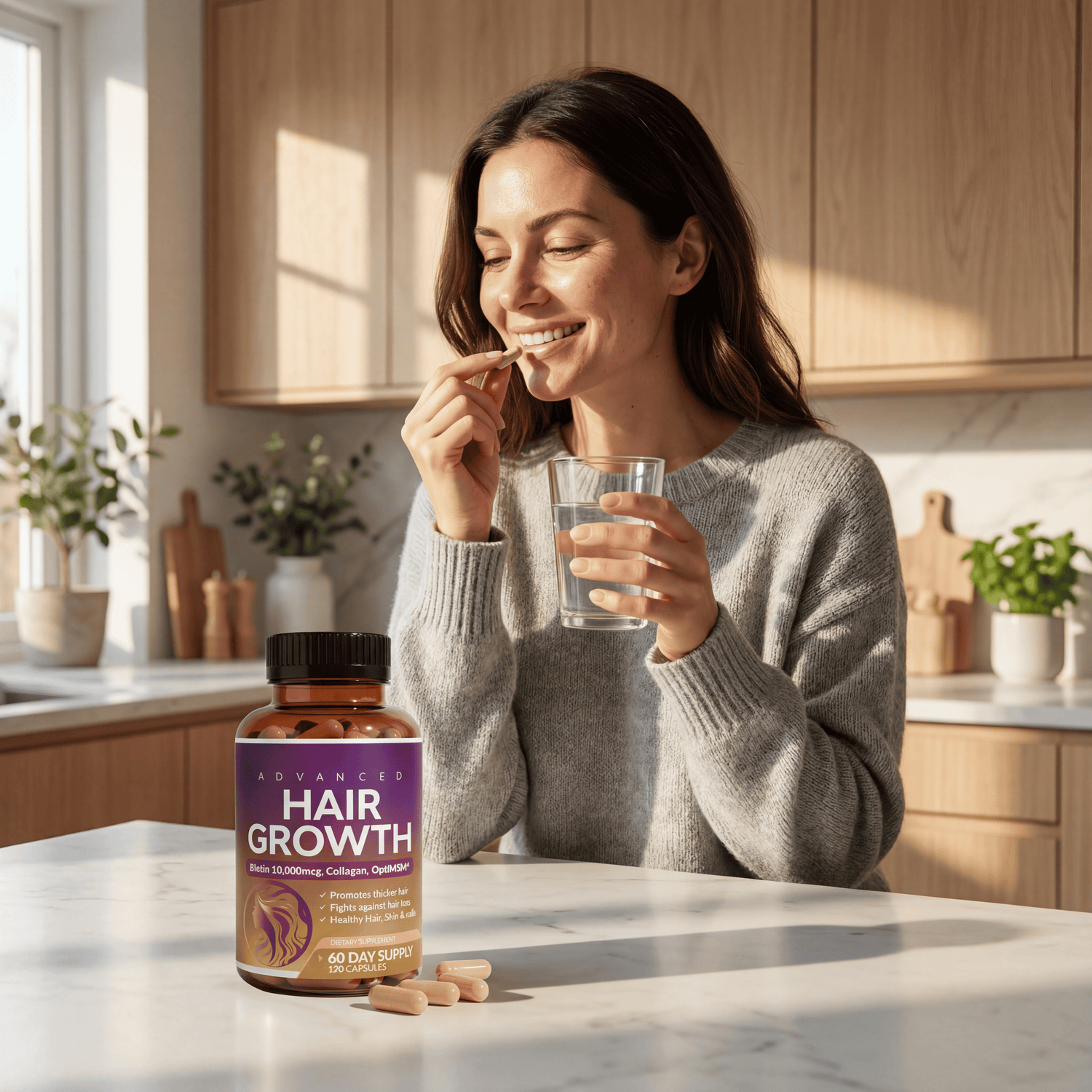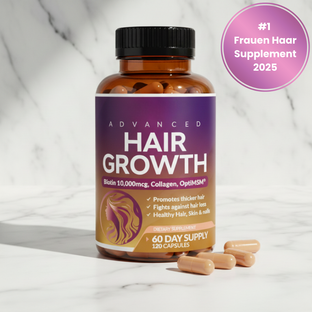 Die meisten Supplements enthalten nur Biotin. Unsere 24 in 1 Haarwuchs Kapseln kombinieren 10'000mcg Biotin mit Kollagen, OptiMSM® und 20+ Nährstoffen, die zusammenarbeiten, um deine Follikel von innen zu nähren. Es ist nicht nur eine Zutat – es ist eine komplette Haarwuchs-Formel, der über 14'000 Frauen vertrauen.