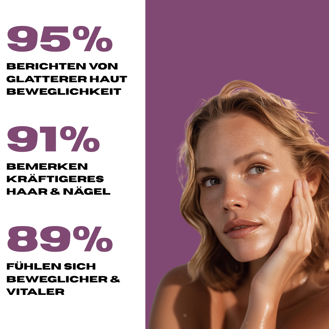 Er unterstützt deine Haut, Haare, Nägel und Gelenke von innen – für ein natürlich frisches, starkes und jugendliches Körpergefühl.